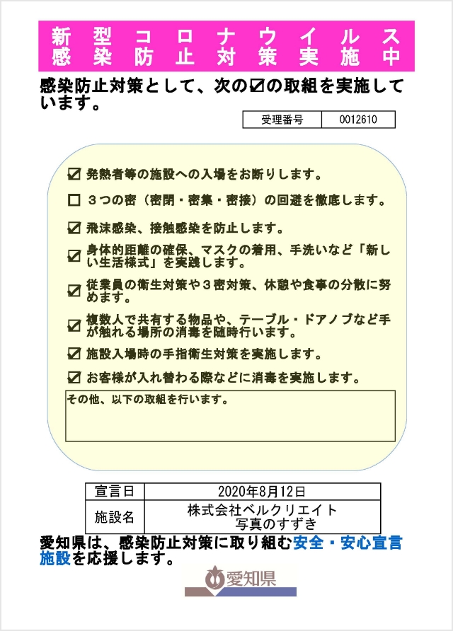 写真のすずきでは、お客様に安心して撮影をしていただくために