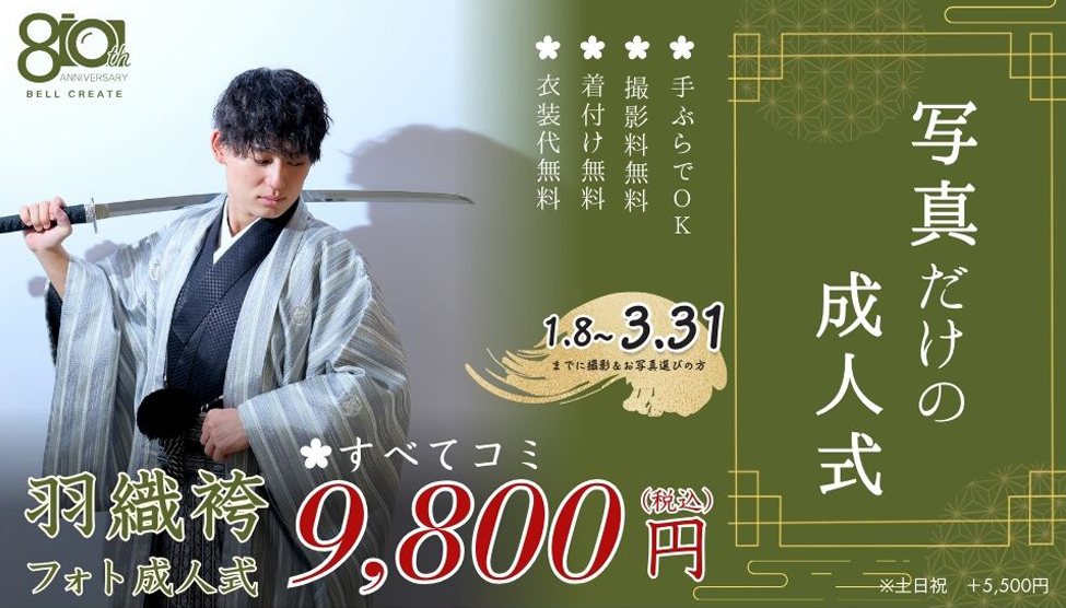 スーツ・袴2026年 創業80周年 写真だけの成人式 キャンペーン!